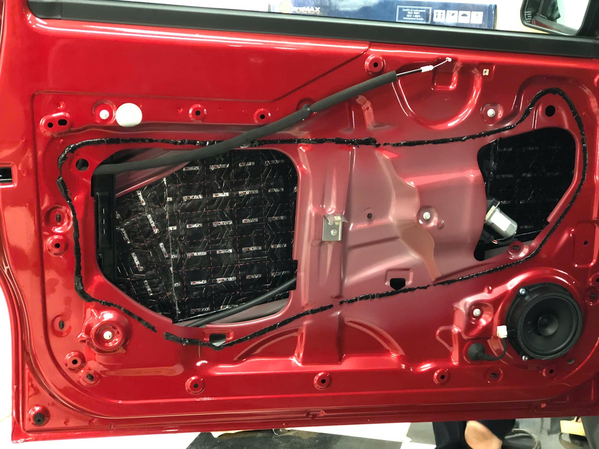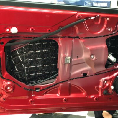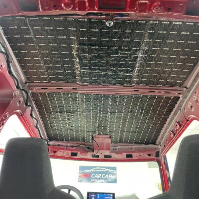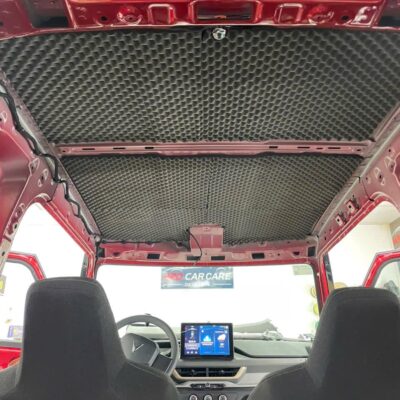 – **Sàn và gầm xe:** Dán 2 lớp – lớp chống rung Butyl siêu dính và lớp tiêu âm bằng mút cao su non giúp triệt tiêu âm thanh từ mặt đường. – **Cửa xe:** Xử lý 2 lớp vật liệu, ngăn tiếng gió rít và tiếng xe ngoài lọt vào khoang. – **Hốc bánh:** Dán vật liệu cách âm chịu nhiệt, giảm tiếng đá văng và tiếng lốp va chạm mặt đường. – **Khoang máy:** Dán vật liệu tiêu âm giúp giảm tiếng quạt, motor và rung động.